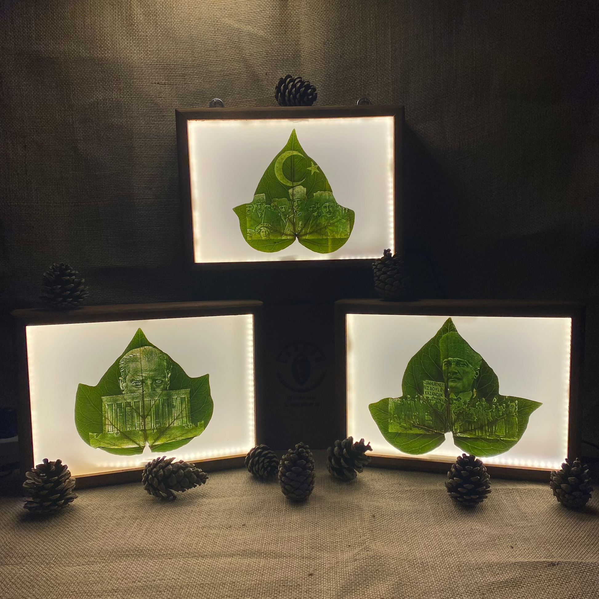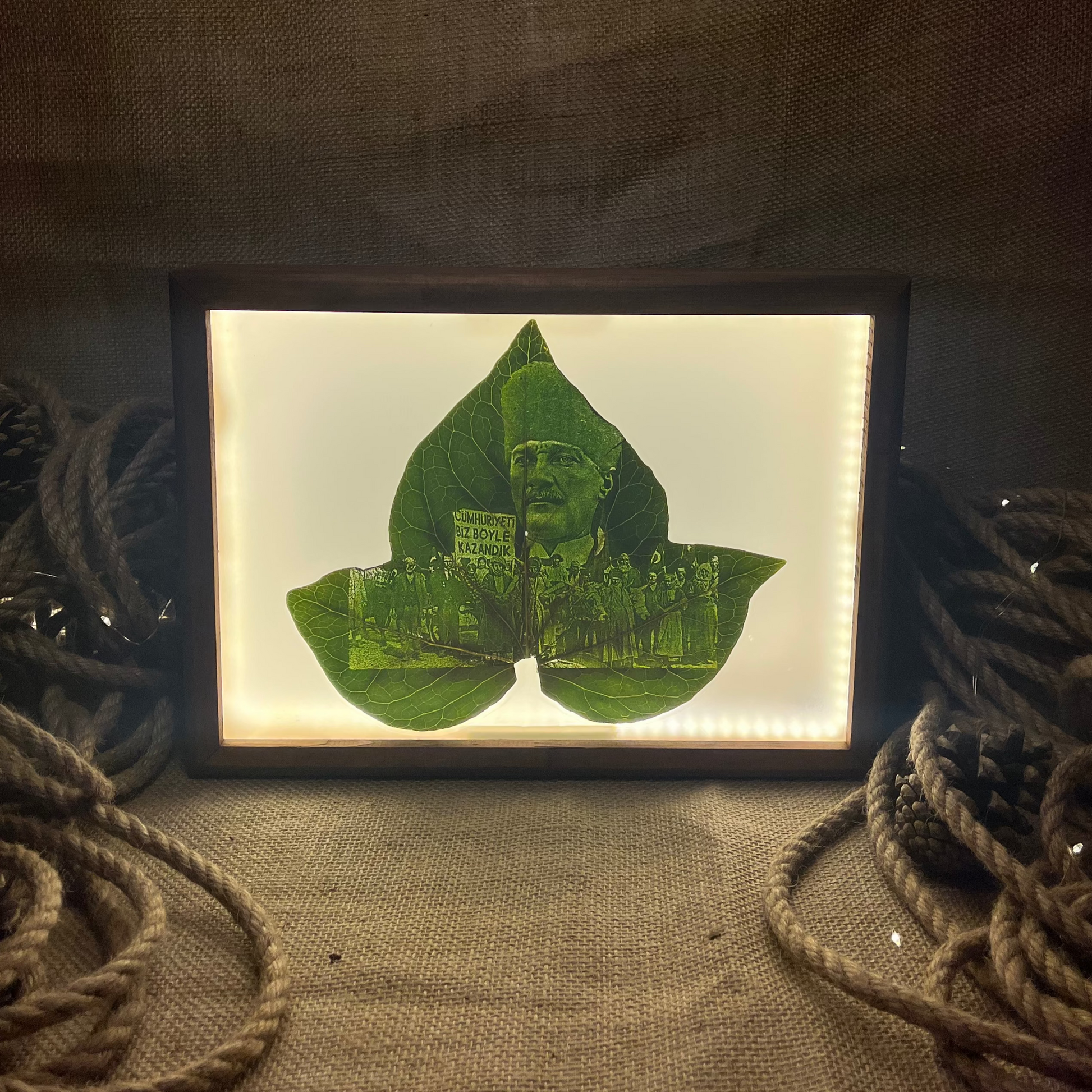 Doğal yaprak üzerine işlenmiş portresiyle Atam'ı evimde ağırlamak çok özel bir his. LED ışığı ve çerçevesiyle her şey çok kaliteli ve özenli.
