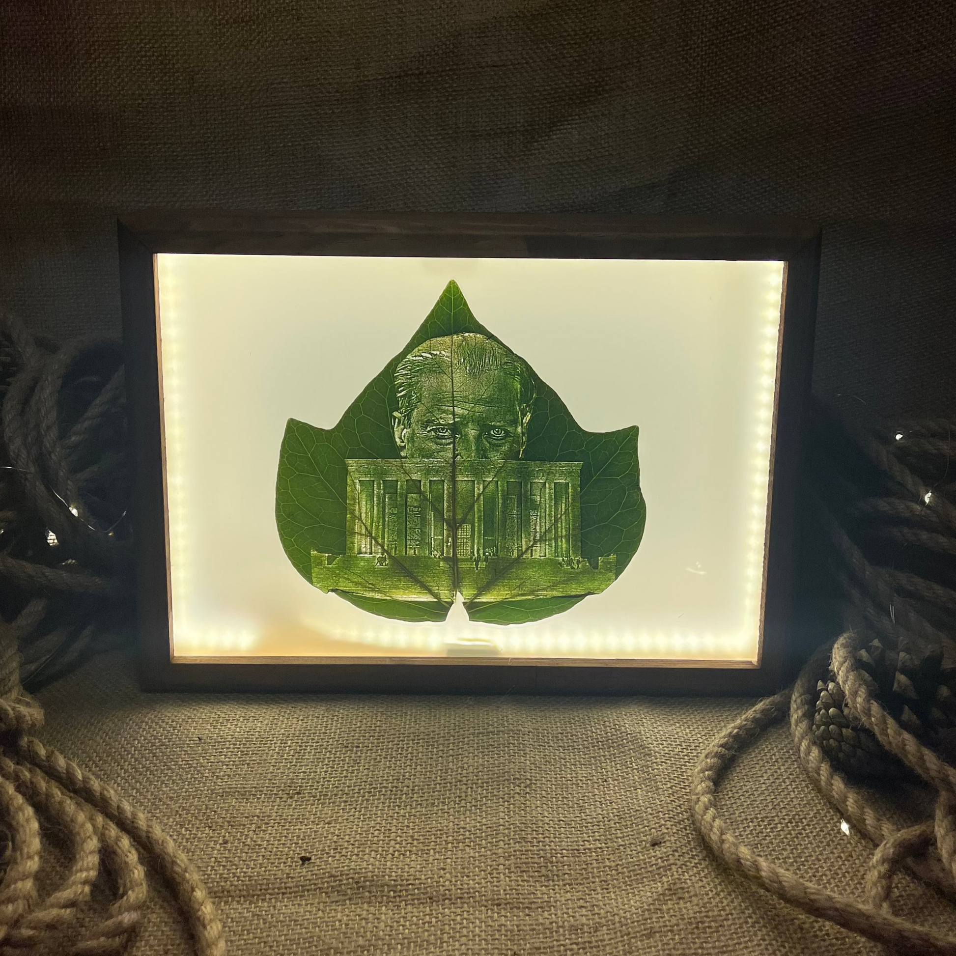 Bu ürün hem zarif hem de çok anlamlı. Doğal bir yaprak üzerine portre işlenmiş olması inanılmaz bir sanat anlayışı. Aydınlatması da çok etkileyici.